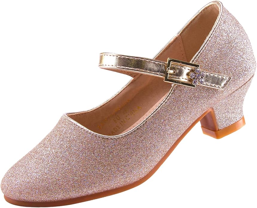 Girl's Dress Shoes Mary Jane Glitter 1.5 in Low Heel Wedding Party Princess Shoes for Toddler/Little/Big Kids