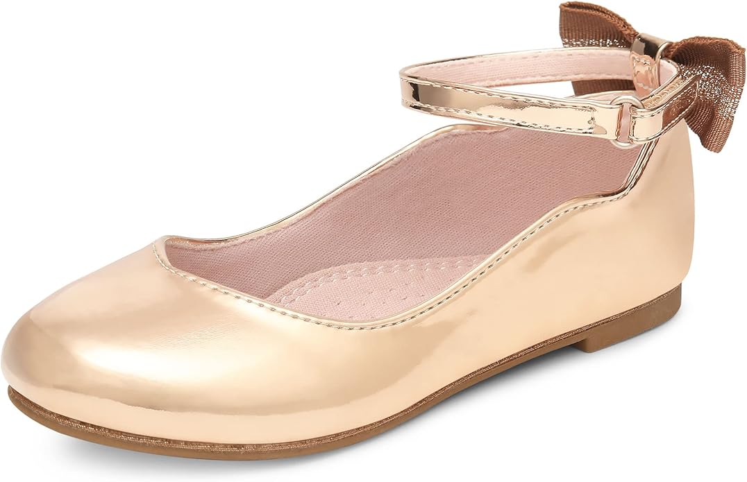 Girls Leather Bows Design Soft Round Toe Princess Dress Mary Jane Flat Shoes(Toddler/Little Kid)