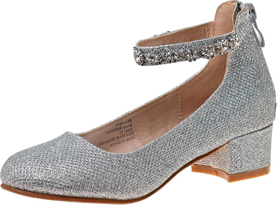 Girls Dress Block Medium Heel Party Pumps - Closed Toe Ankle Strap High Heels for Girl - Black/Silver/Champagne/Rose Gold (Sizes