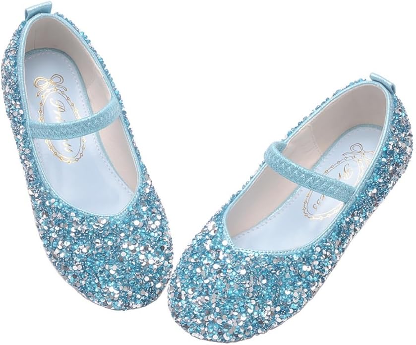 Flats Mary Jane Dance Party Cosplay Shoes, Snow Queen Princess Birthday Sandals for Little Girls, Toddler