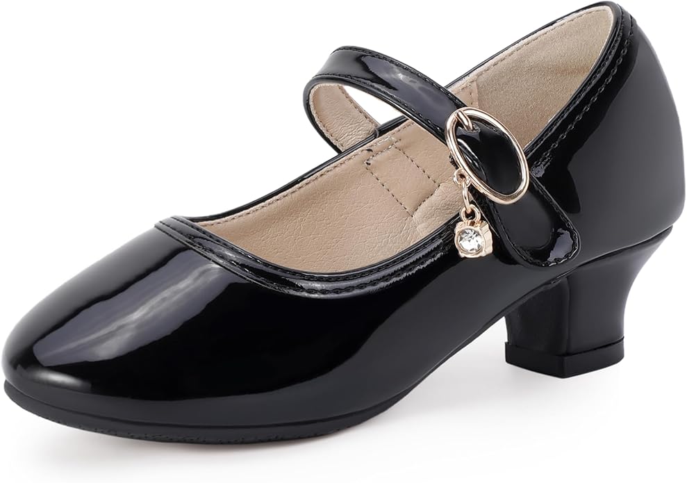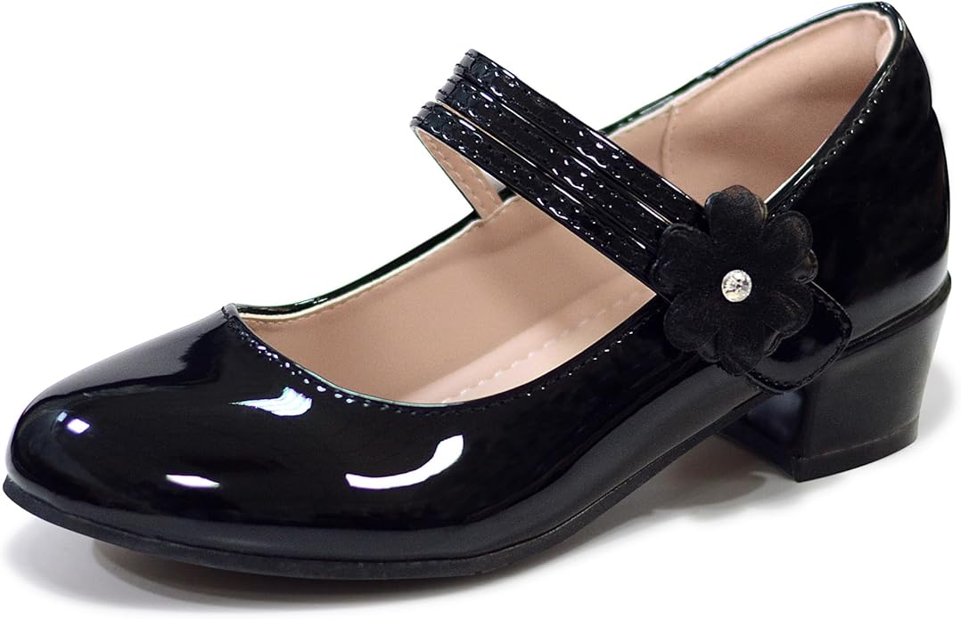 Girls Dress Shoes Mary Jane Shoes for Girls Low Heel with Ankle Strap Dress Shoes for School Wedding Party